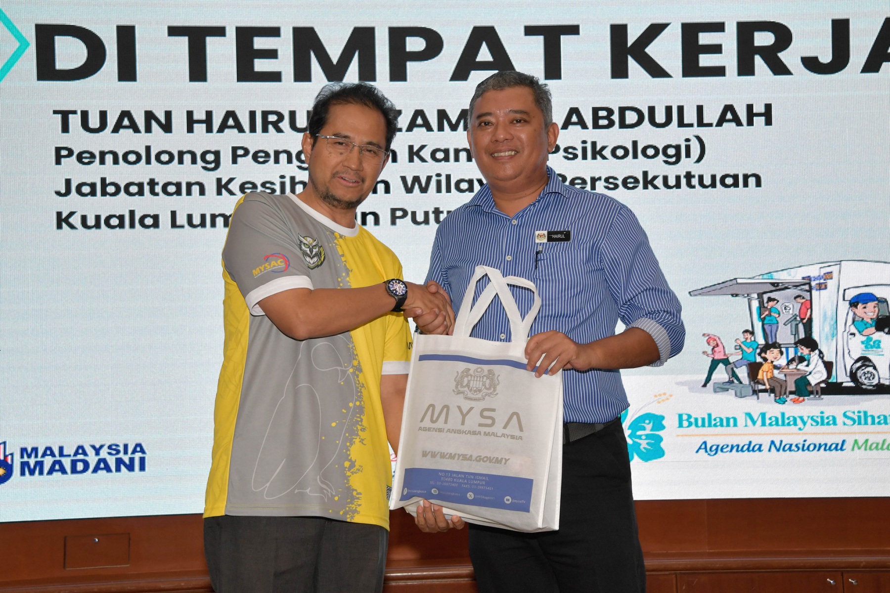 Agensi Angkasa Malaysia (MYSA) perkasa gaya hidup sihat dan kesihatan mental di Hari Kesedaran Kesihatan MYSA 2025. Perasmian program telah disempurnakan oleh YBrs. Encik Samsuddin bin Omar, Timbalan Ketua Pengarah (Penyelidikan & Pembangunan) MYSA pada 29 September 2025, bertempat di Ibu Pejabat MYSA, Kuala Lumpur.