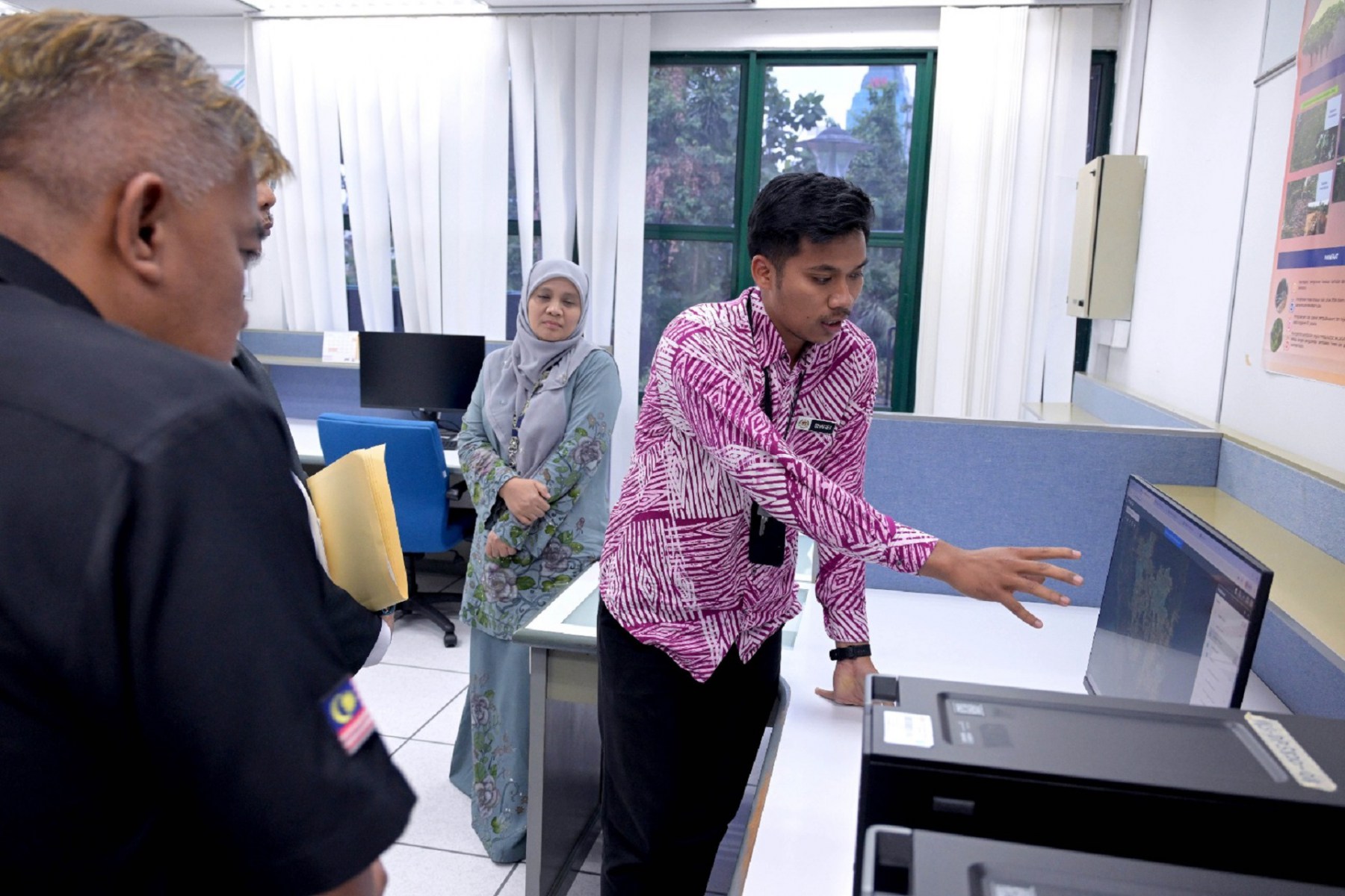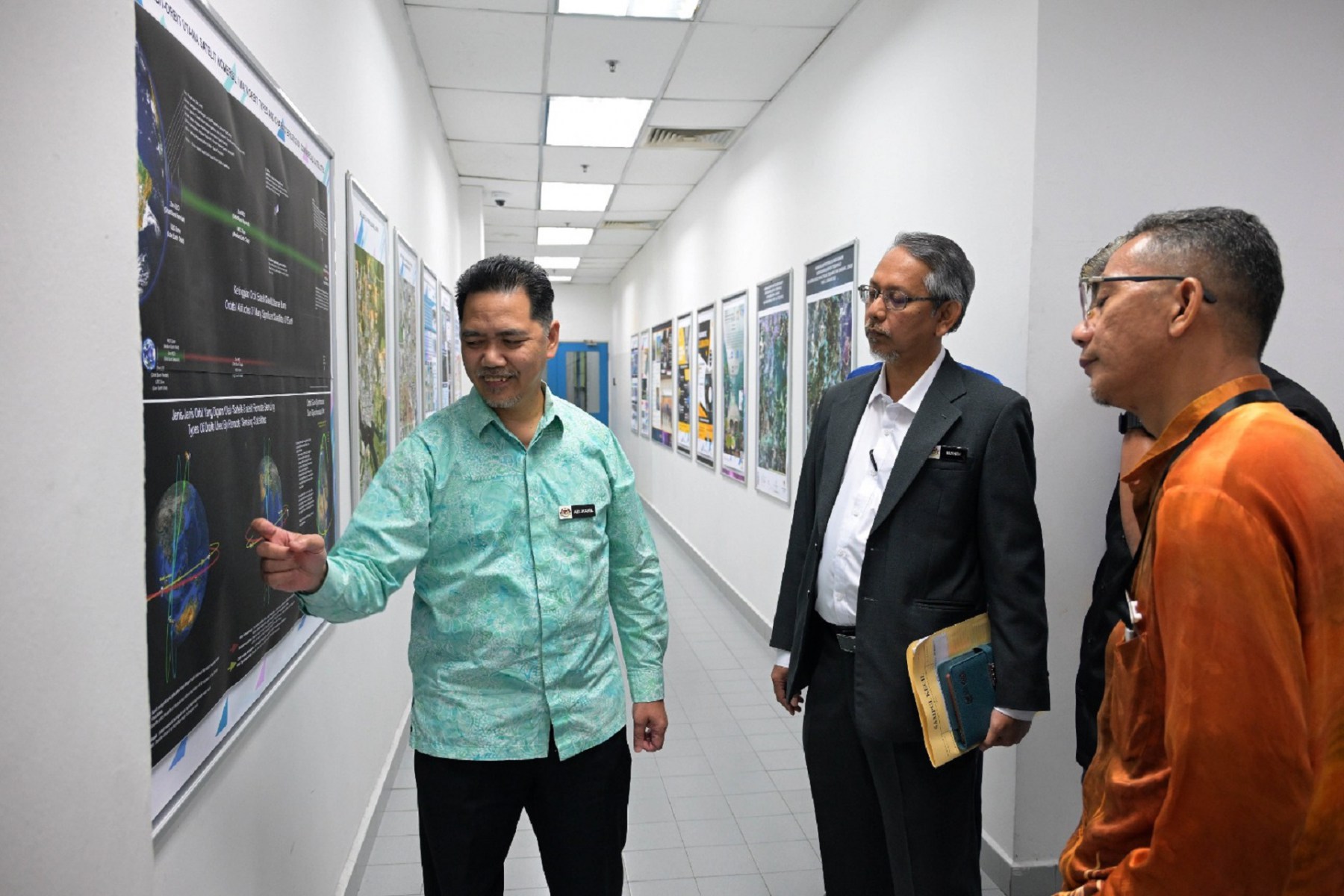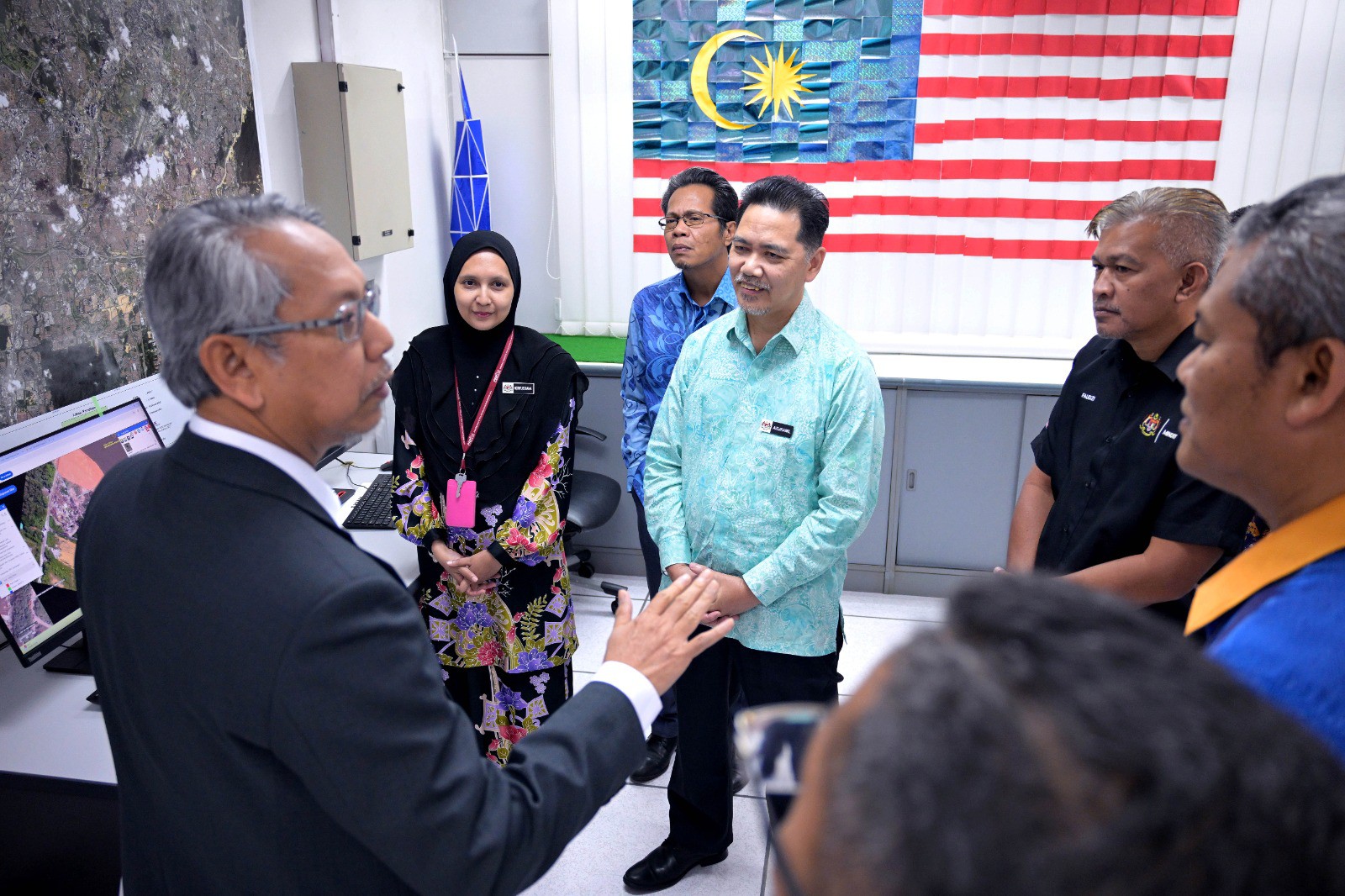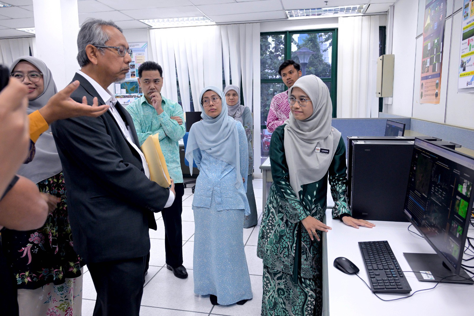 Delegasi turut dibawa melawat ke stesen kerja (work station) bagi melihat pengoperasian sistem aplikasi terbitan teknologi angkasa yang telah dibangunkan oleh MYSA.