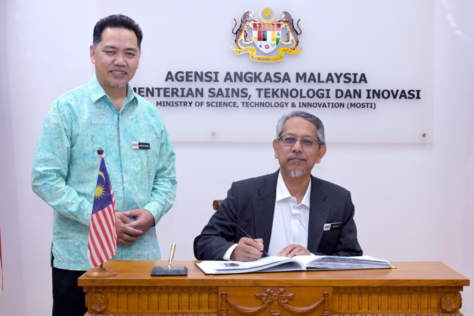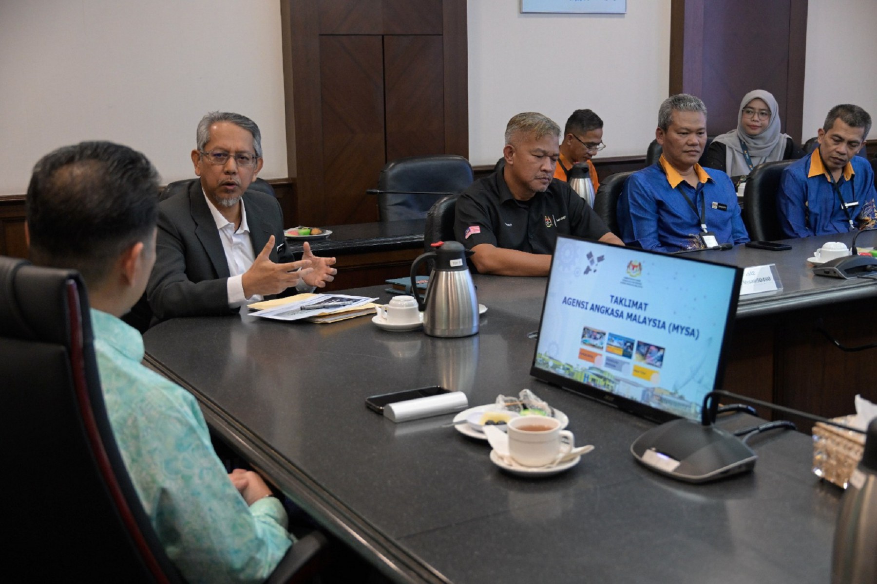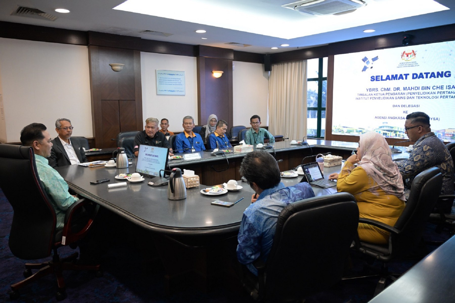 YBhg. Dato’ Gs. Haji Azlikamil bin Napiah, Ketua Pengarah Agensi Angkasa Malaysia (MYSA) menerima kunjungan hormat daripada YBrs. ChM. Dr. Mahdi bin Che Isa, Timbalan Ketua Pengarah (Penyelidikan Pertahanan), Institut Penyelidikan Sains dan Teknologi Pertahanan (STRIDE) dan delegasi di Ibu Pejabat MYSA, Kuala Lumpur pada 12 Februari 2026.