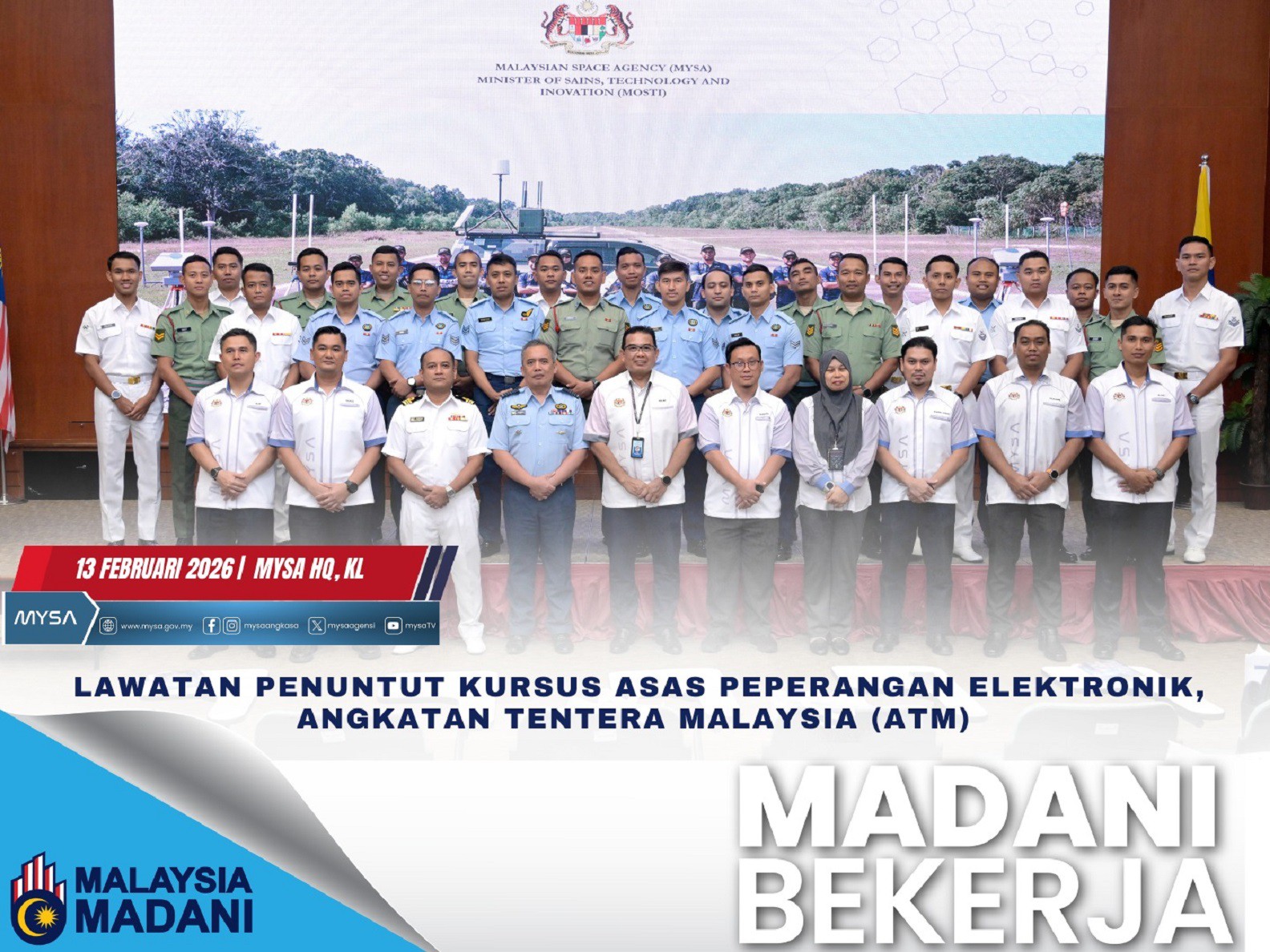 Menerima lawatan daripada penuntut Kursus Asas Peperangan Elektronik (PE) Lain-Lain Pangkat (LLP) Angkatan Tentera Malaysia (ATM) Siri 34/26 ke Ibu Pejabat Agensi Angkasa Malaysia (MYSA), Kuala Lumpur pada 13 Februari 2026.