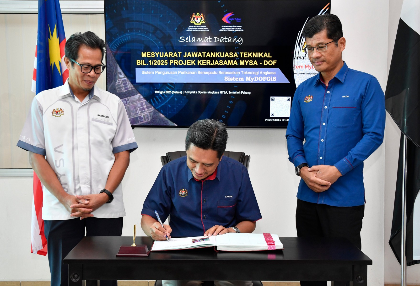 Nota Kerjasama Projek Sistem Pengurusan Perikanan Bersepadu Berasaskan Teknologi Angkasa (Sistem MyDOFGiS) antara Agensi Angkasa Malaysia (MYSA) dengan Jabatan Perikanan Malaysia (DOF) telah dimeterai pada September tahun lalu. Pemeteraian ini merupakan kesinambungan daripada kerjasama strategik yang telah dimulakan sejak tahun 2018 menerusi pembangunan Sistem Pengurusan Kawalan Biosekuriti Perikanan (Sistem bioDOF-Map).
