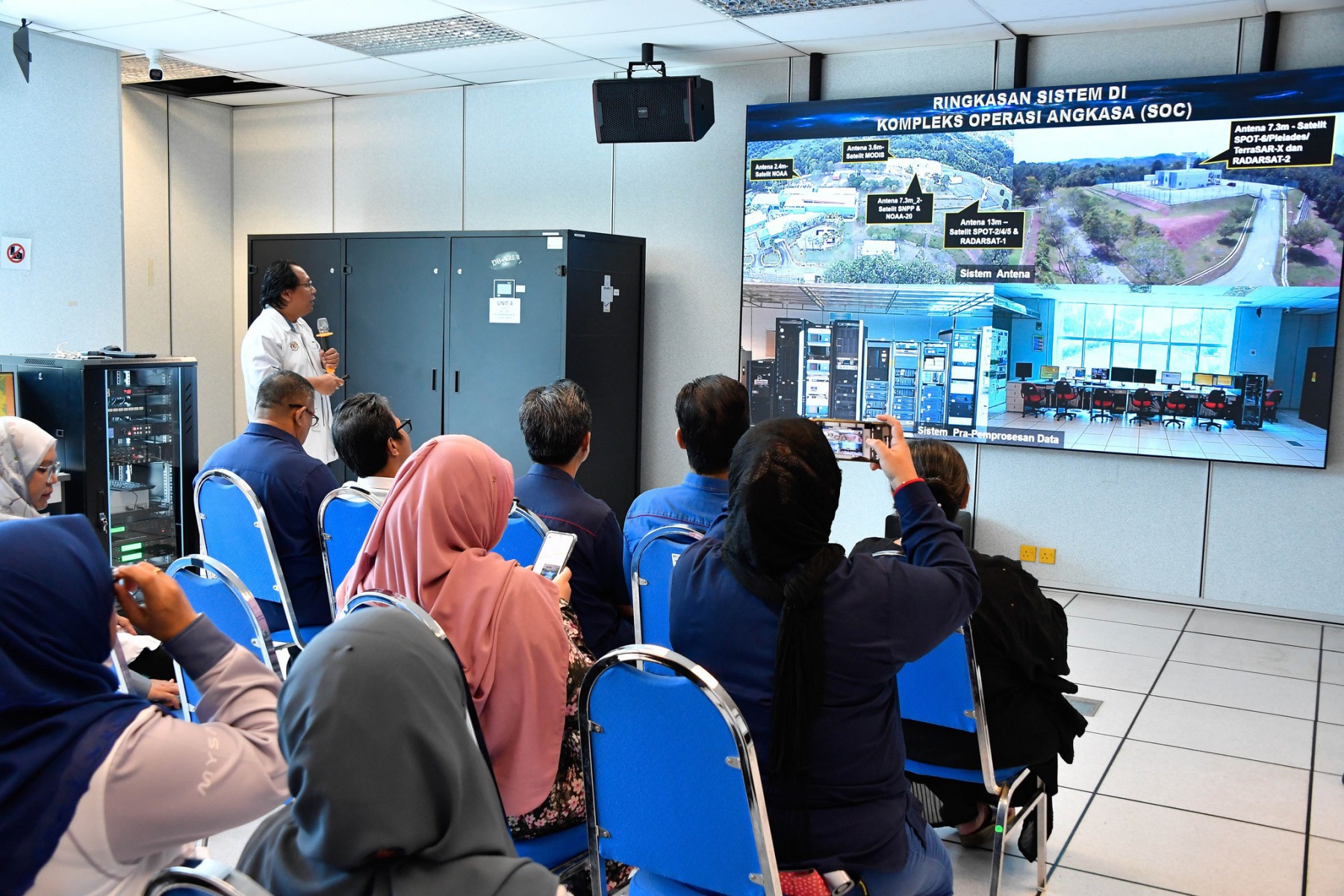 Terdahulu sebelum mesyuarat, delegasi DOF telah diberikan taklimat mengenai pengoperasian penerimaan dan prapemprosesan data satelit penderiaan jauh di SOC serta dibawa melawat ke platform Sistem Antena Data Satelit Oseanografi Generasi Baharu MYSA yang berfungsi menerima data satelit penderiaan jauh secara langsung setiap hari.