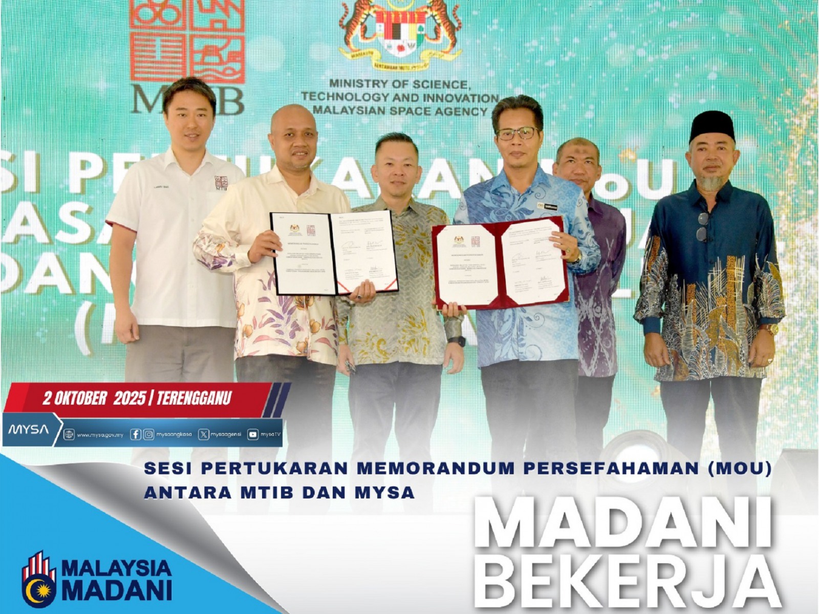 Pertukaran Memorandum Persefahaman (MoU) antara Lembaga Perindustrian Kayu Malaysia (MTIB) dan Agensi Angkasa Malaysia (MYSA) telah berlangsung pada 2 Oktober 2025 di Model Ladang Buluh, Kuala Berang, Terengganu, sempena sambutan World Bamboo Day 2025.