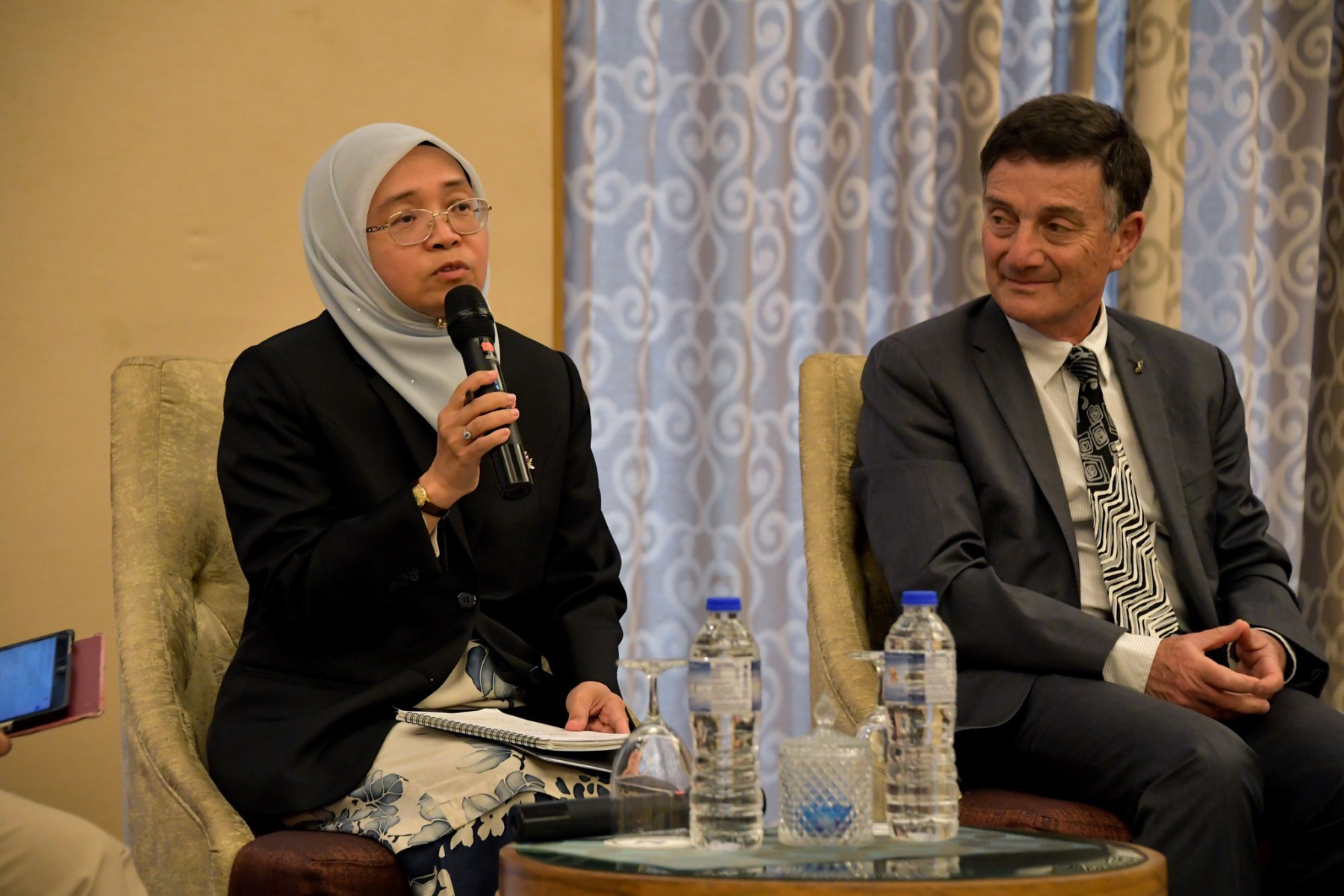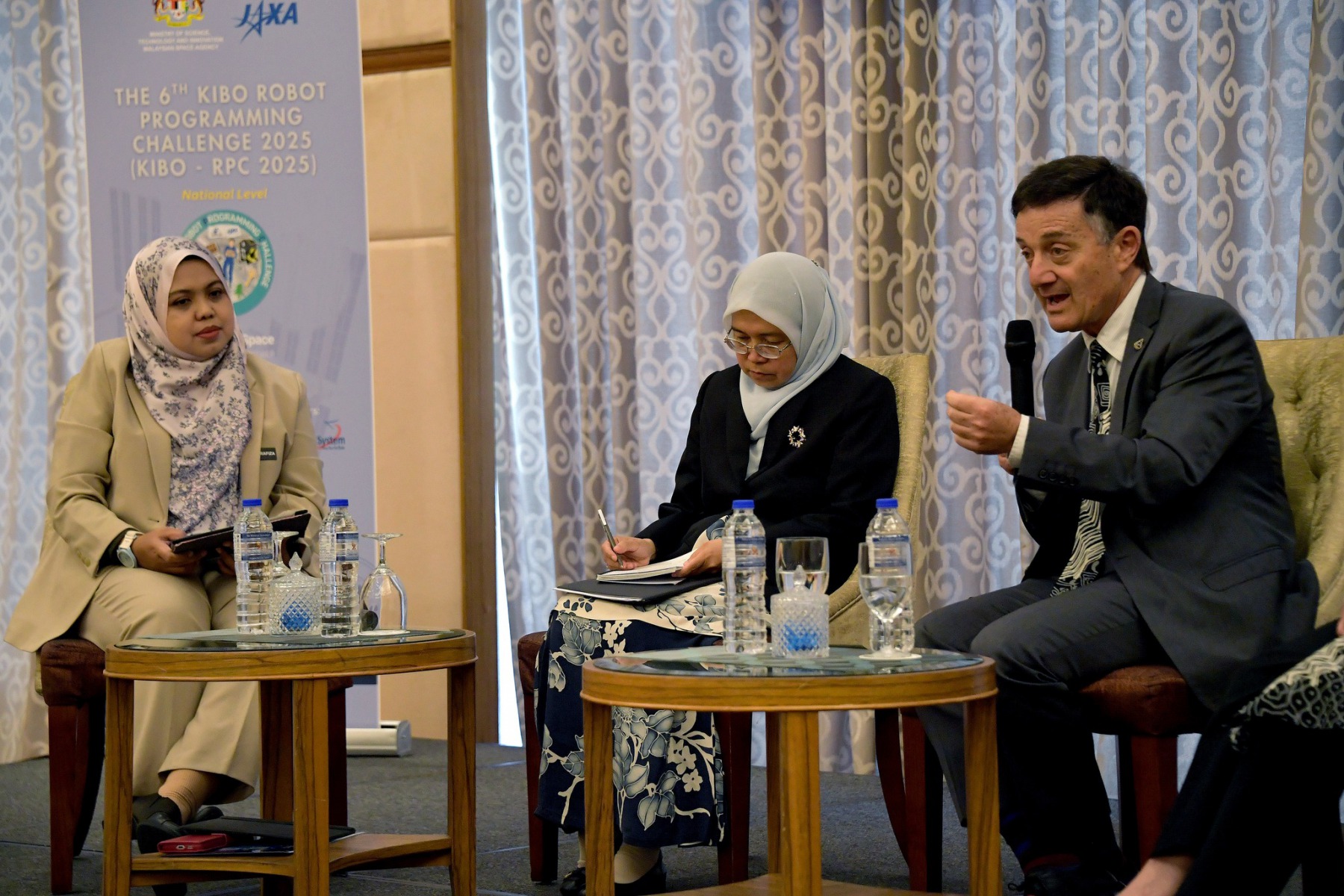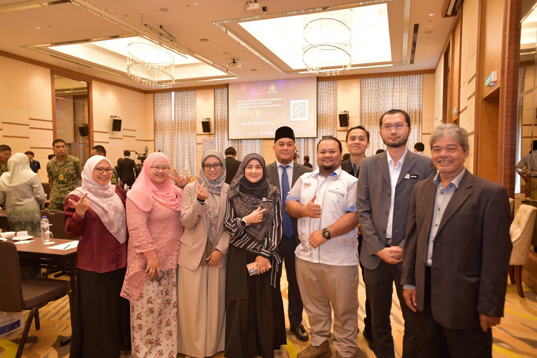 Hadir sama ialah Puan Norsham binti Abdul Latip, Timbalan Ketua Setiausaha (Pembangunan Teknologi), MOSTI dan YBhg. Dato’ Gs. Haji Azlikamil bin Napiah, Ketua Pengarah Agensi Angkasa Malaysia (MYSA).