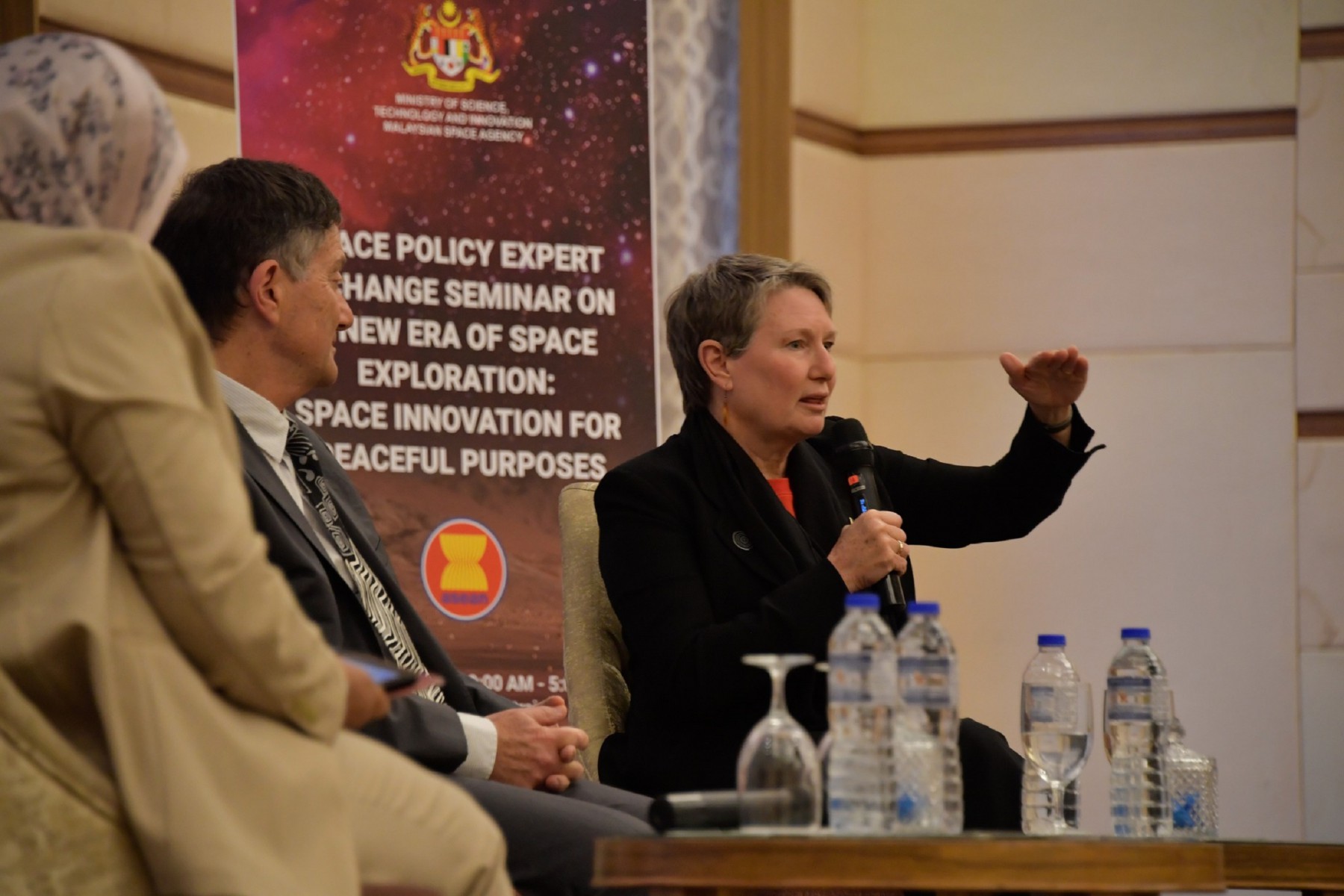 Seminar Polisi Angkasa bertemakan 𝐄𝐫𝐚 𝐁𝐚𝐡𝐚𝐫𝐮 𝐄𝐤𝐬𝐩𝐥𝐨𝐫𝐚𝐬𝐢 𝐀𝐧𝐠𝐤𝐚𝐬𝐚: 𝐈𝐧𝐨𝐯𝐚𝐬𝐢 𝐀𝐧𝐠𝐤𝐚𝐬𝐚 𝐔𝐧𝐭𝐮𝐤 𝐓𝐮𝐣𝐮𝐚𝐧 𝐀𝐦𝐚𝐧 (𝐀 𝐍𝐞𝐰 𝐄𝐫𝐚 𝐨𝐟 𝐒𝐩𝐚𝐜𝐞 𝐄𝐱𝐩𝐥𝐨𝐫𝐚𝐭𝐢𝐨𝐧: 𝐒𝐩𝐚𝐜𝐞 𝐈𝐧𝐧𝐨𝐯𝐚𝐭𝐢𝐨𝐧 𝐟𝐨𝐫 𝐏𝐞𝐚𝐜𝐞𝐟𝐮𝐥 𝐏𝐮𝐫𝐩𝐨𝐬𝐞𝐬) menjadi platform penting ke arah memacu Malaysia sebagai 𝐏𝐮𝐬𝐚𝐭 𝐊𝐞𝐜𝐞𝐦𝐞𝐫𝐥𝐚𝐧𝐠𝐚𝐧 𝐏𝐞𝐧𝐲𝐞𝐥𝐢𝐝𝐢𝐤𝐚𝐧 𝐝𝐚𝐧 𝐏𝐞𝐦𝐛𝐚𝐧𝐠𝐮𝐧𝐚𝐧 𝐊𝐞𝐩𝐚𝐤𝐚𝐫𝐚𝐧 𝐏𝐞𝐫𝐮𝐧𝐝𝐚𝐧𝐠𝐚𝐧 𝐝𝐚𝐧 𝐏𝐨𝐥𝐢𝐬𝐢 𝐀𝐧𝐠𝐤𝐚𝐬𝐚 𝐒𝐞𝐫𝐚𝐧𝐭𝐚𝐮 (𝐑𝐞𝐠𝐢𝐨𝐧𝐚𝐥 𝐂𝐞𝐧𝐭𝐫𝐞 𝐨𝐟 𝐄𝐱𝐜𝐞𝐥𝐥𝐞𝐧𝐜𝐞 𝐟𝐨𝐫 𝐑𝐞𝐬𝐞𝐚𝐫𝐜𝐡 𝐚𝐧𝐝 𝐃𝐞𝐯𝐞𝐥𝐨𝐩𝐦𝐞𝐧𝐭 𝐢𝐧 𝐒𝐩𝐚𝐜𝐞 𝐋𝐚𝐰 𝐚𝐧𝐝 𝐏𝐨𝐥𝐢𝐜𝐲), selaras dengan aspirasi Dasar Angkasa Negara 2030 (DAN2030).
