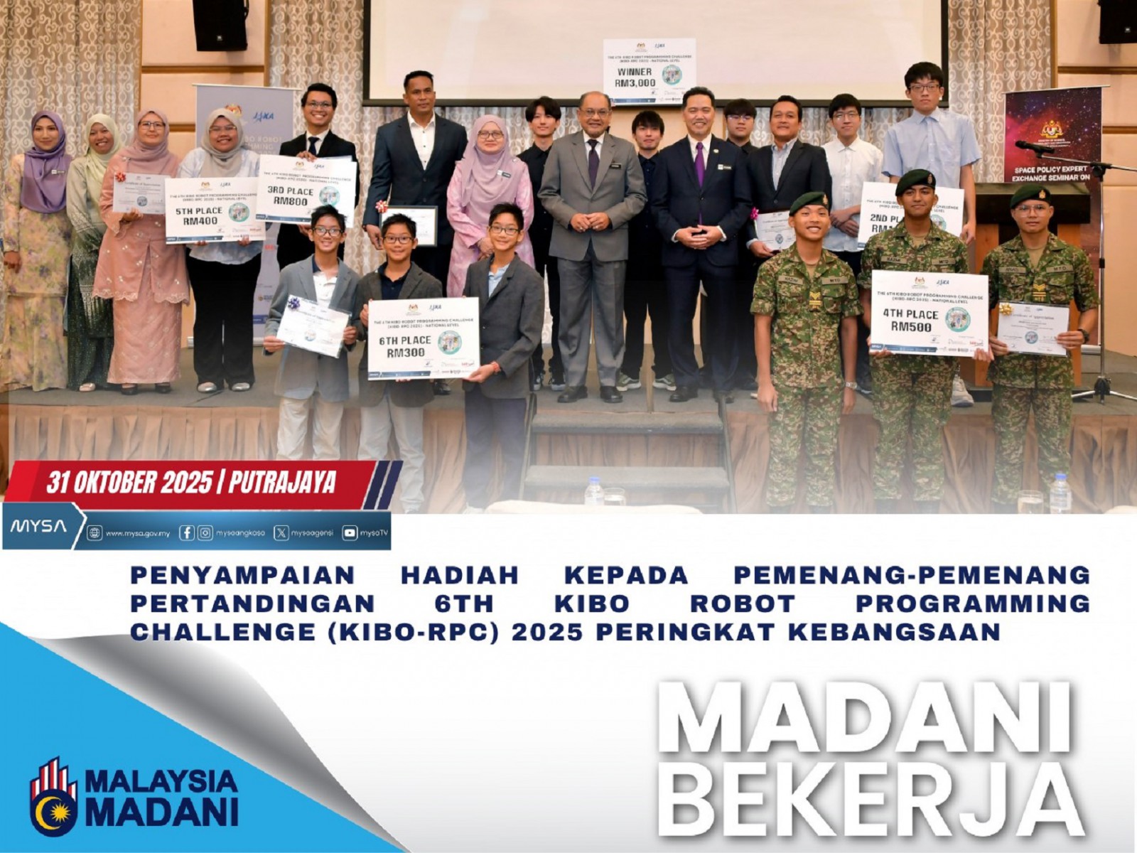 Penyampaian hadiah kepada pemenang telah disempurnakan oleh YBhg. Datuk Seri Hj. Hasnol Zam Zam bin Hj. Ahmad, Ketua Setiausaha Kementerian Sains, Teknologi dan Inovasi (MOSTI) pada majlis perasmian Seminar Polisi Angkasa bertemakan Era Baharu Eksplorasi Angkasa: Inovasi Angkasa Untuk Tujuan Aman (A New Era of Space Exploration: Space Innovation for Peaceful Purposes) pada 31 Oktober 2025, Putrajaya.